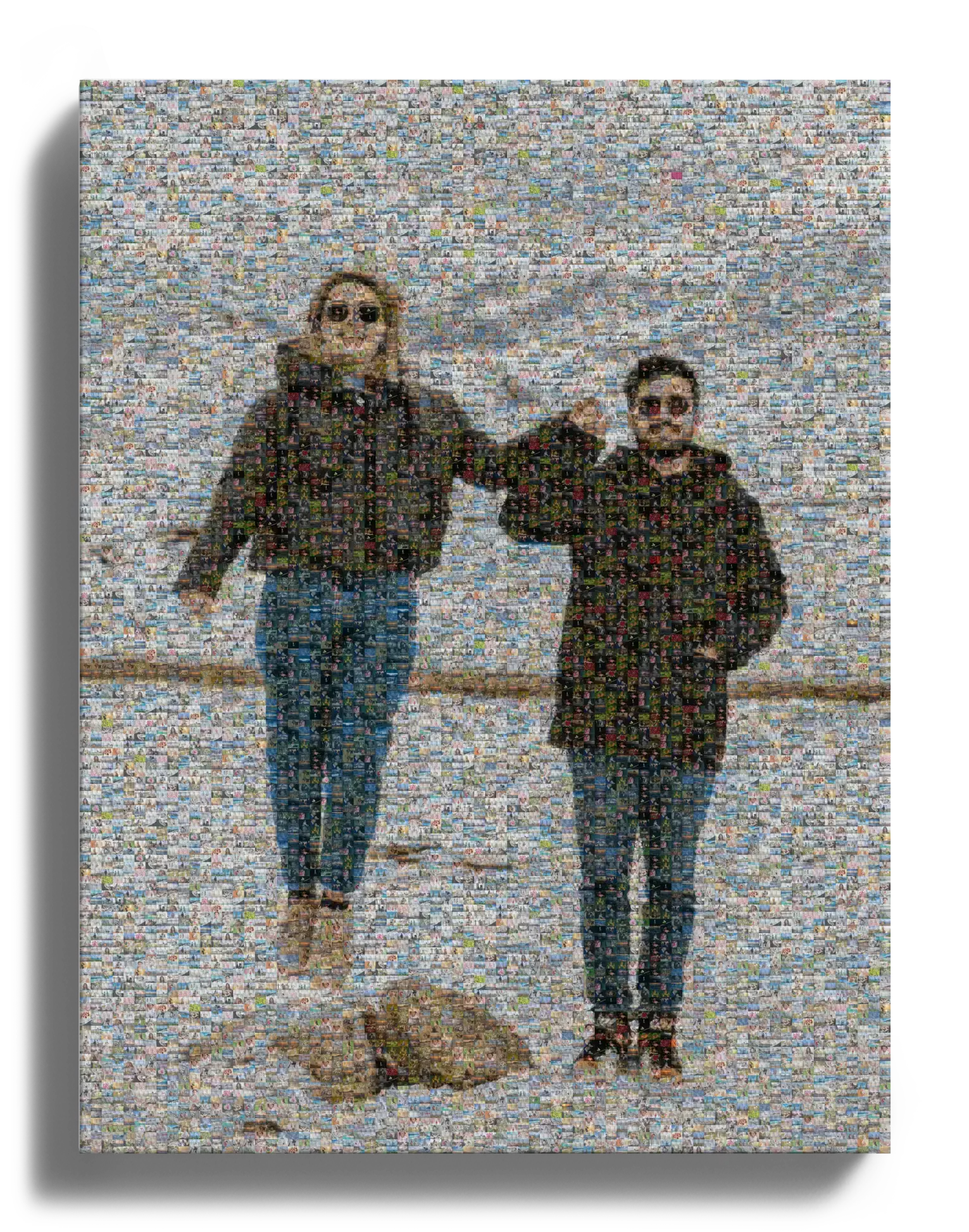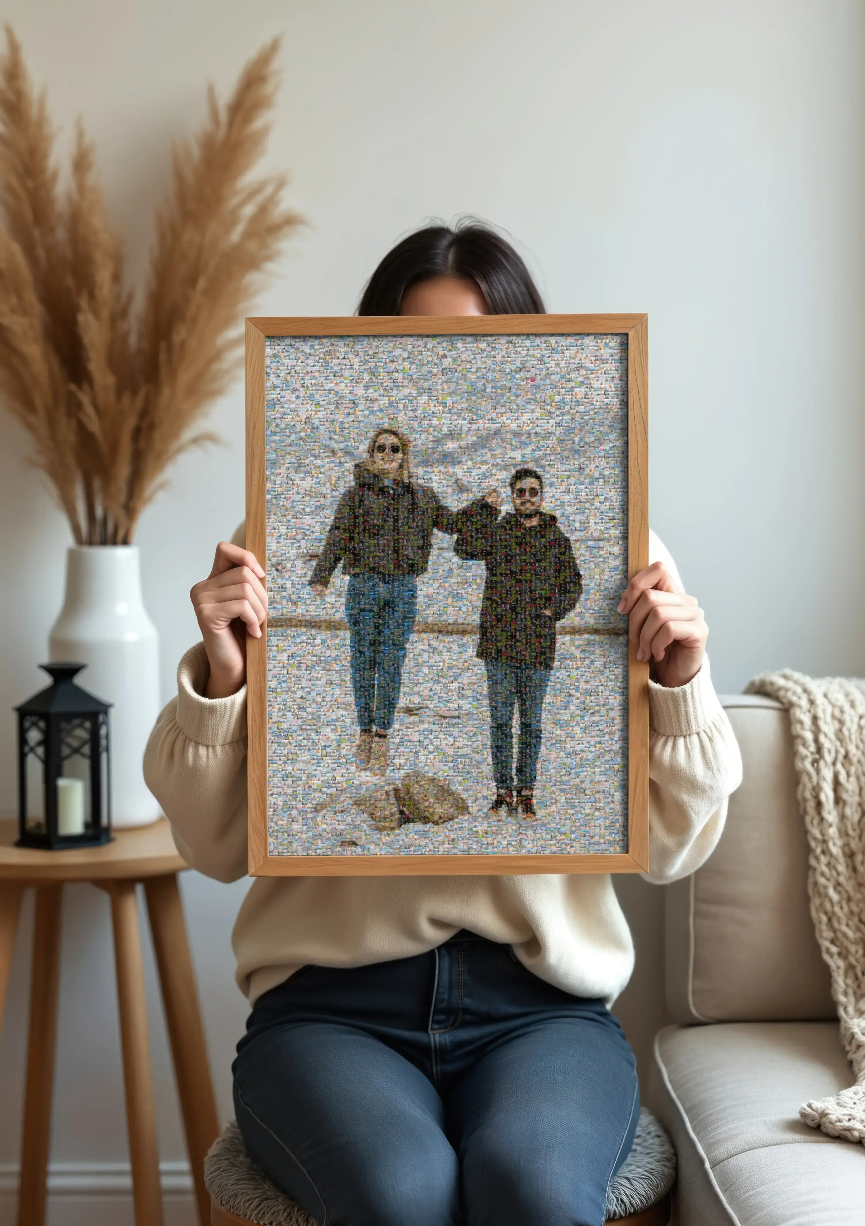 Gestalterisch hast du viel Freiheit: Hauptbild und Mosaikfotos sind individuell anpassbar, sodass wirklich eure Motive im Mittelpunkt stehen. Du kannst je nach Variante mit unterschiedlicher Kachelgröße und Bildwirkung arbeiten, von klar erkennbaren Einzelbildern bis zu einer sehr feinen Gesamtoptik. So entsteht genau die Balance, die zu euren Erinnerungen passt.