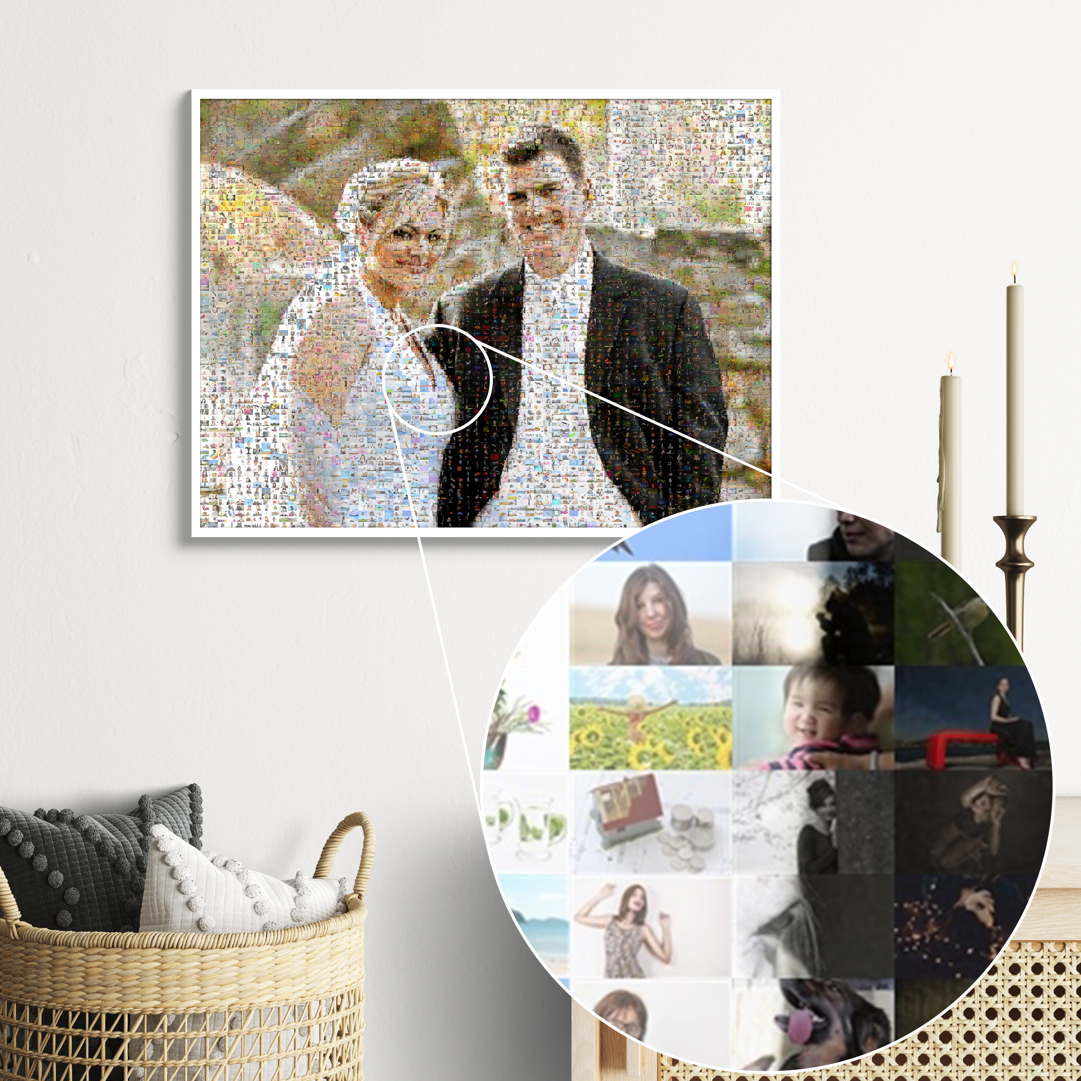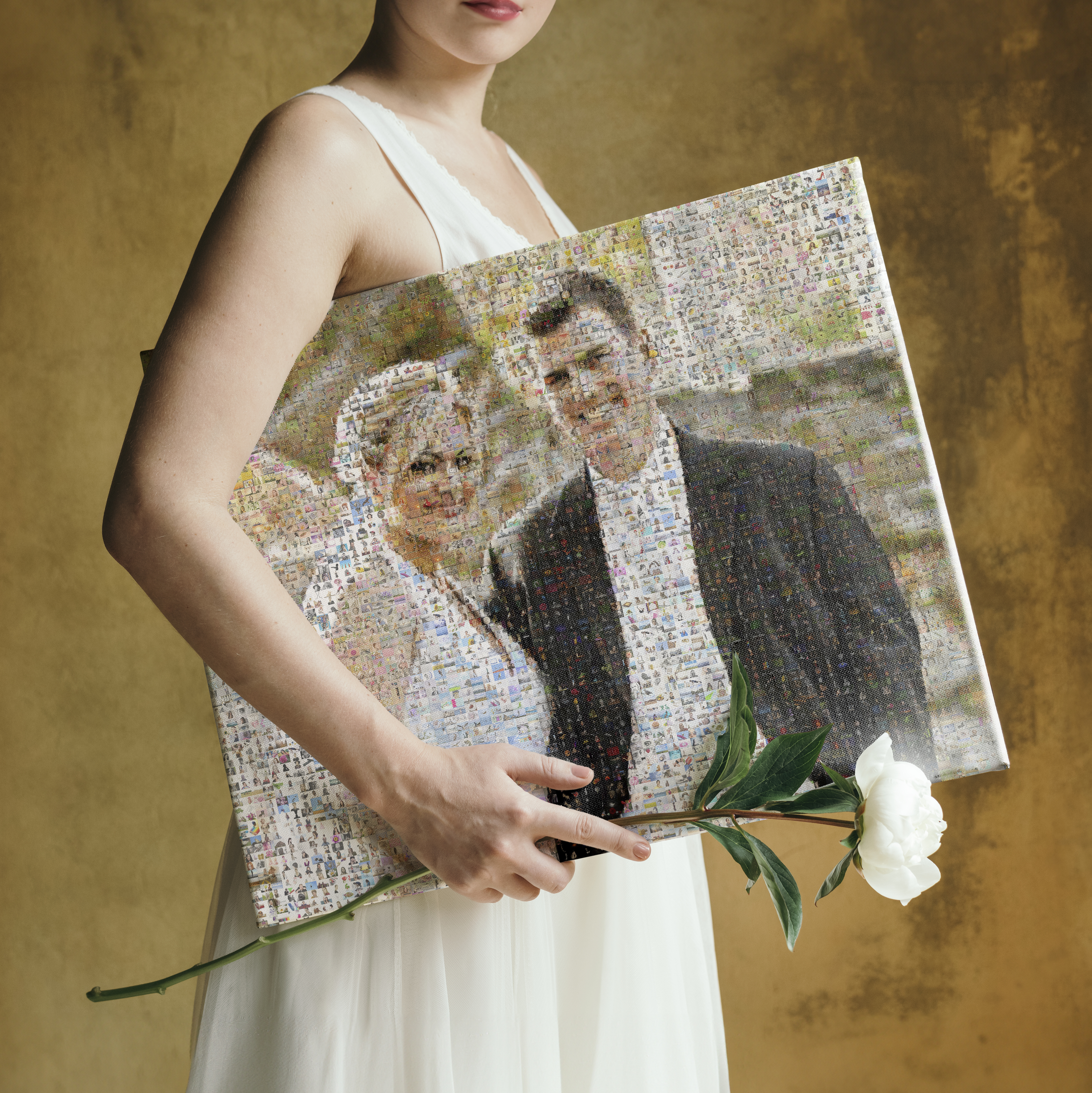 Créez un souvenir unique et inoubliable avec un magnifique photomosaïque. Imaginé pour être un cadeau de mariage spécial, ce produit présente une grande photo du couple de mariés composée de nombreux petits clichés. Destiné aux couples ou offert par des proches, il symbolise une attention significative pour ce jour particulier et constitue une pièce décorative parfaite pour la maison. Tous les éléments visuels peuvent être personnalisés selon vos souhaits.